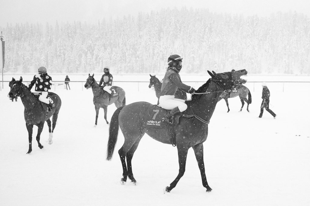 Era mi primer viaje a St. Moritz y todo me parecía sacado de otro mundo. Las montañas blancas, el silencio previo a la carrera, los caballos tensos como flechas a punto de soltarse.