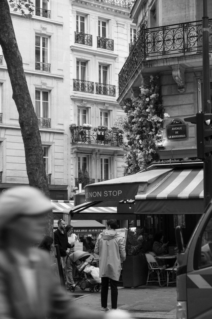 Antes de hacer la foto, la imagen ya estaba clara en mi cabeza. Los colores encajaban por sĂ solos sobre ese fondo gris, lluvioso y perfectamente parisino. Al mirarla ahora, casi se puede escuchar el murmullo de la calle y la melodĂa del acordeĂłn flotando en el aire, como si te encontrarás ahĂ mismo y la escena siguiese ocurriendo.