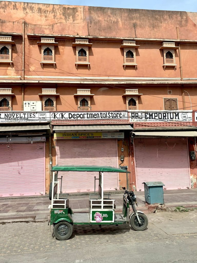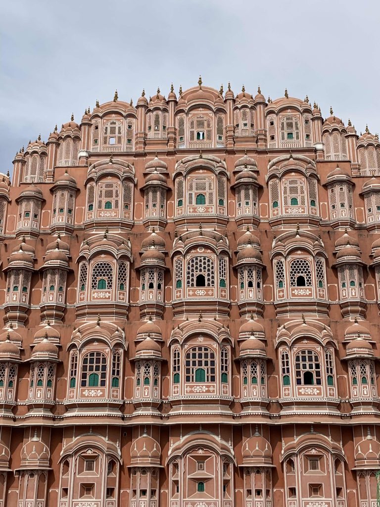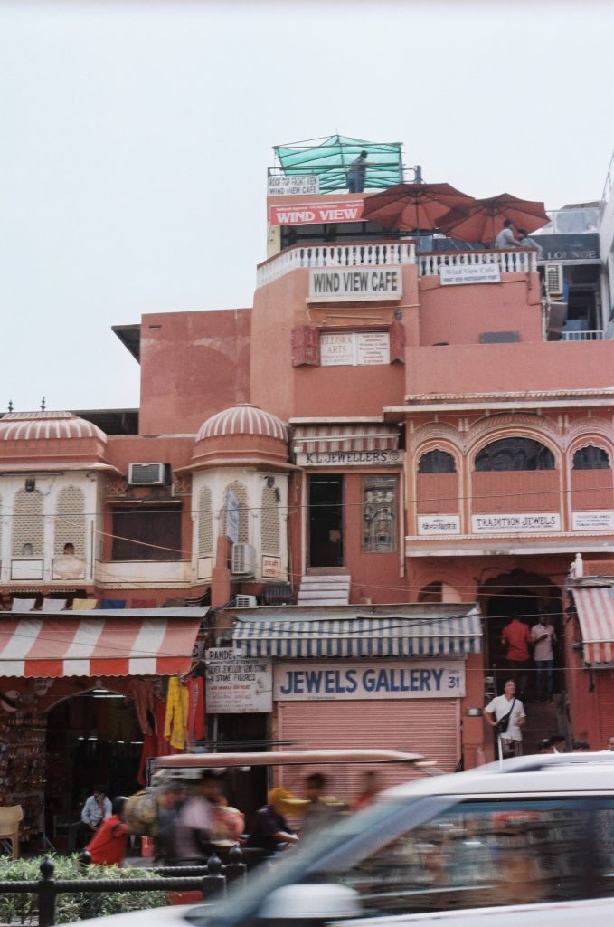 La historia del color es tan curiosa como absurda. En 1905, Jaipur se pintĂł de rosa para recibir al PrĂncipe de Gales, y desde entonces no ha cambiado. El tiempo, claro, ha dejado su marca: la pintura está sucia por la poluciĂłn, se descascara en partes. Pero justamente ese desgaste le suma carácter. Ahora, con esa pátina de decadencia, el lugar tiene aĂşn más personalidad. Y el conjunto, a pesar de todo, sigue siendo impresionante.